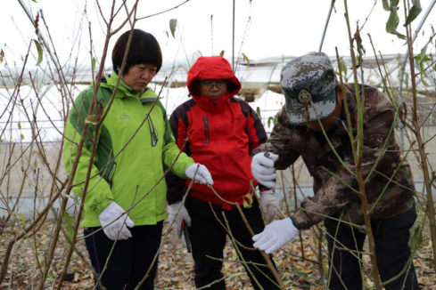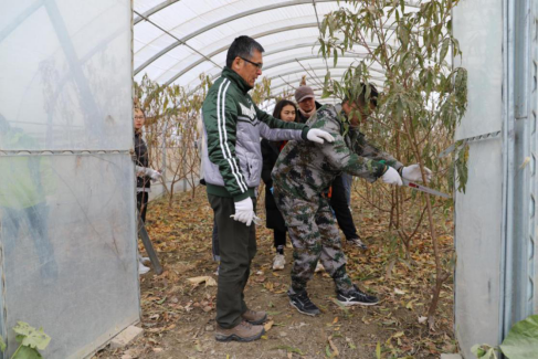 本次活动主要内容是设施桃树的整形修剪,张琦和王新建教授为托喀依乡职工和参加活动师生进行了现场讲解和技术示范,支部成员分组开展桃树开心形和主干形的修剪工作。经过3个多小时奋战,2个大棚桃树的整形修剪完成。通过技术帮扶,职工对桃树的树形培养有了进一步的认识,并切实掌握了桃树的整形修剪技术。